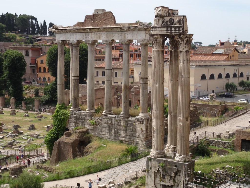 The columns of the Temple of Saturn in Rome. Click on the image to view a recipe popular in Rome.