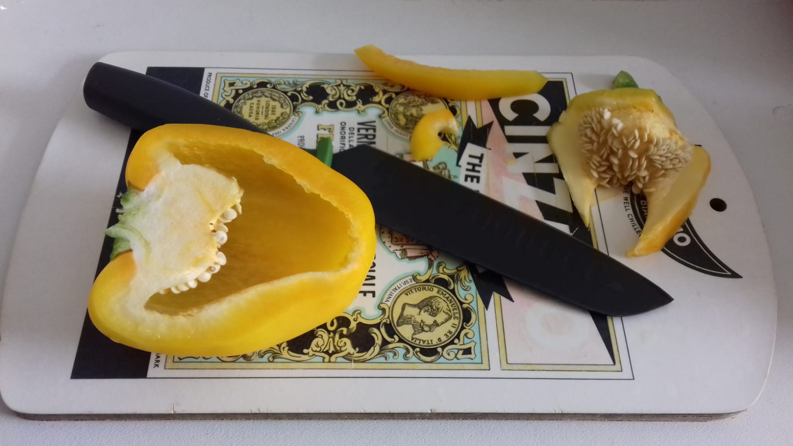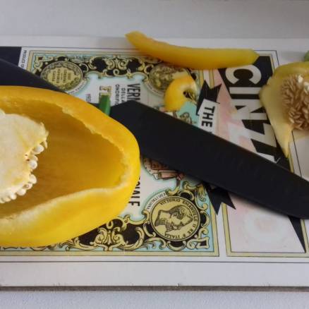 - 2 medium yellow Romano peppers, halved, deseeded and cut into 2 cm strips